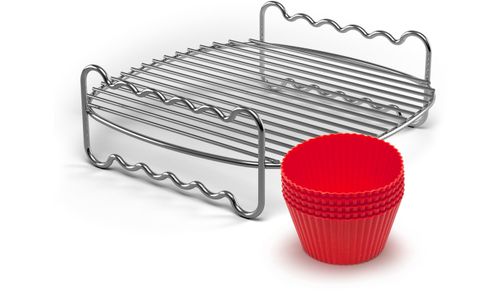 Zorg voor maximale ruimte in uw Airfryer met een extra laag. Bak, gril of frituur heerlijke hamburgers, kippenvleugeltjes, vis en nog veel meer op een eenvoudige, snelle en gezonde manier.
