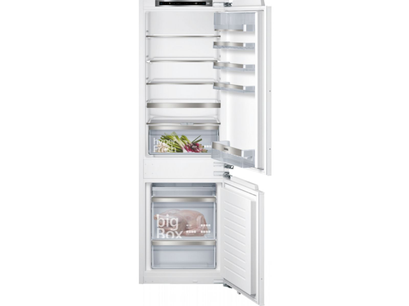 Inbouwkoel-vriescombinatie met lowFrost-technologie en hyperFresh Plus lade die groente en fruit tot wel 2 keer langer vers houdt.