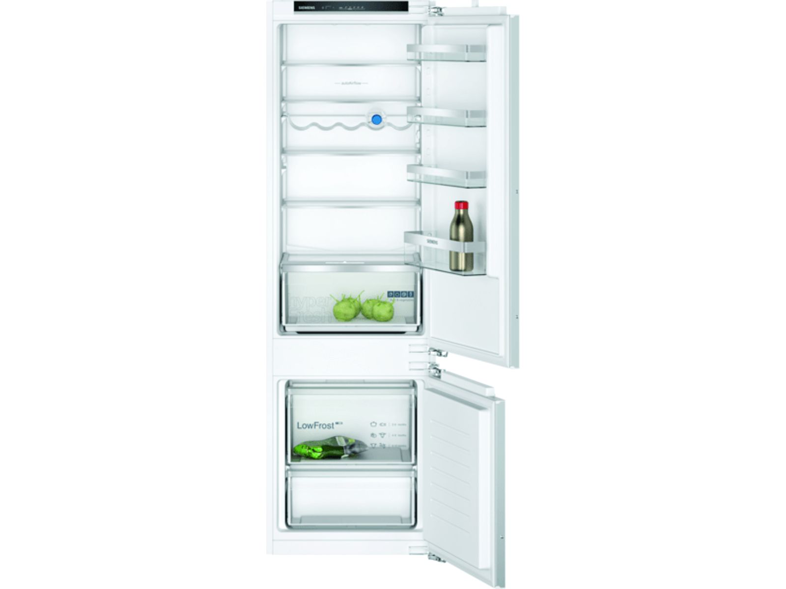 Inbouw koel-/vriescombinatie met hyperFresh om groente en fruit langer vers te houden en LED verlichting voor heldere verlichting.