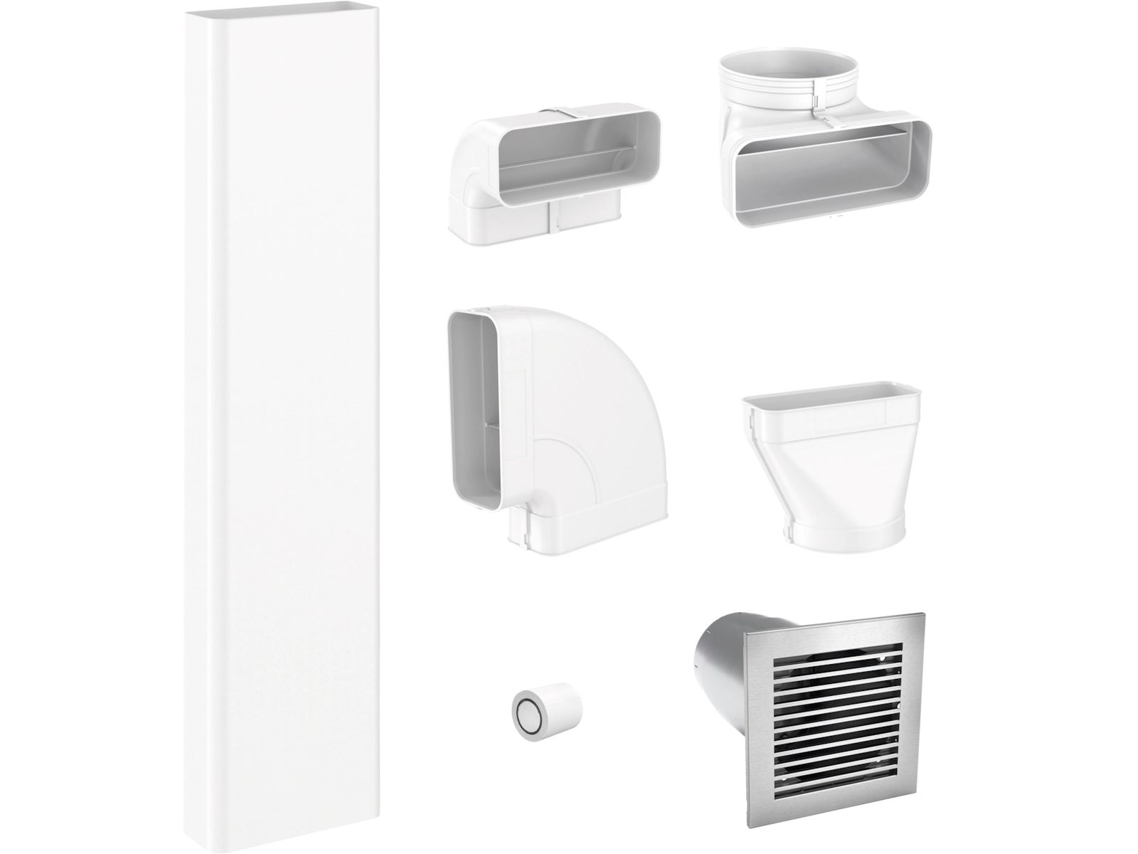 Platte-buisset luchtafvoer (incl. wandkast) voor een individuele luchtgeleiding in luchtafvoermodus.