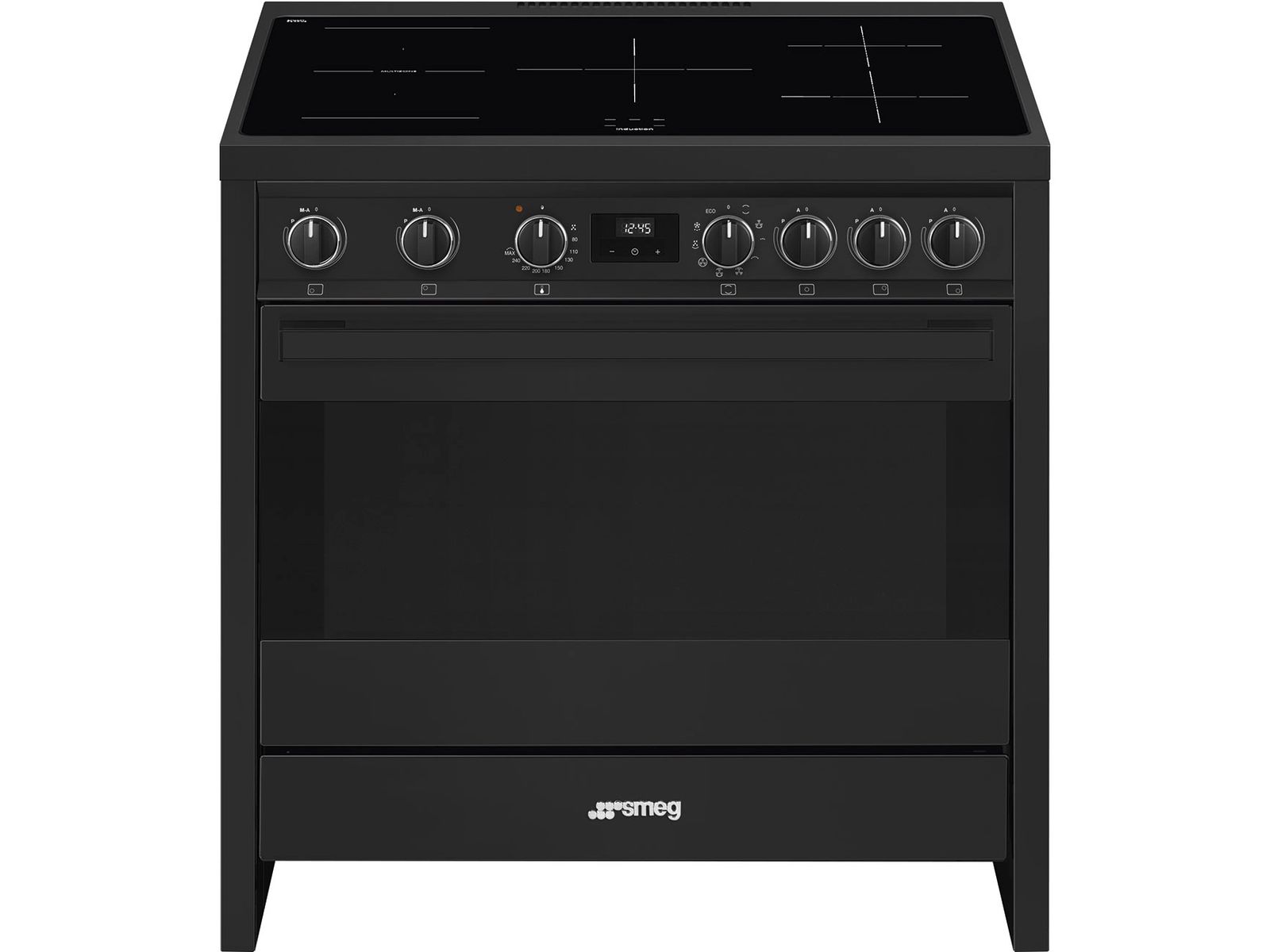 Fornuis 90 x 60 x 90 - 5 inductiezones waarvan 1 multizone - 1 oven - energieklasse A - vapor clean reiniging - antraciet