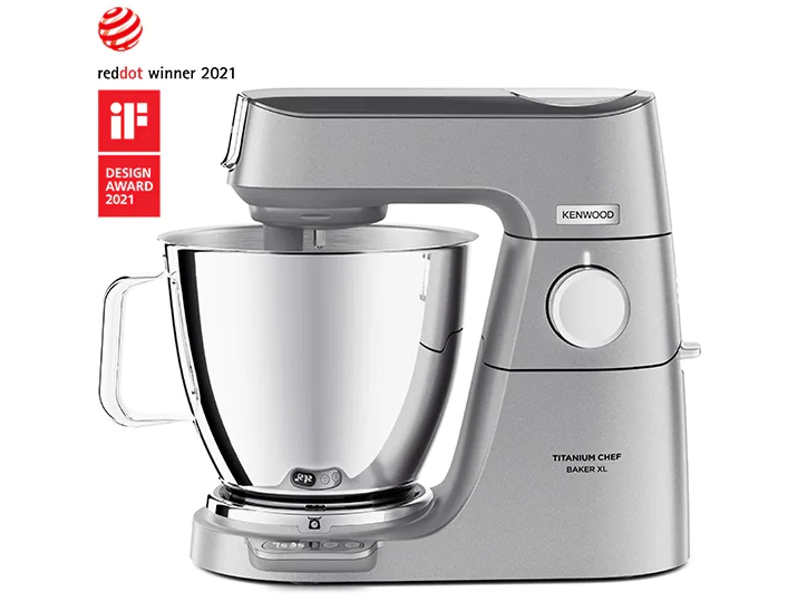 Weeg en creëer in stijl met de zilveren Chef Baker XL. Inclusief ingebouwde weegschaal, extra mengkom en vouwfunctie