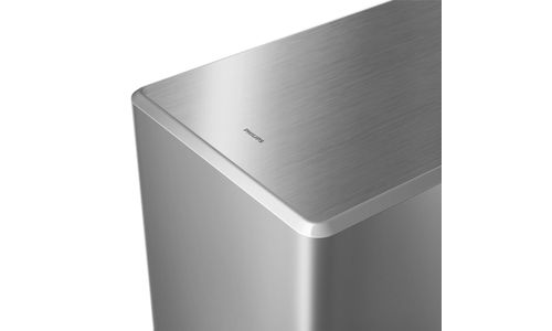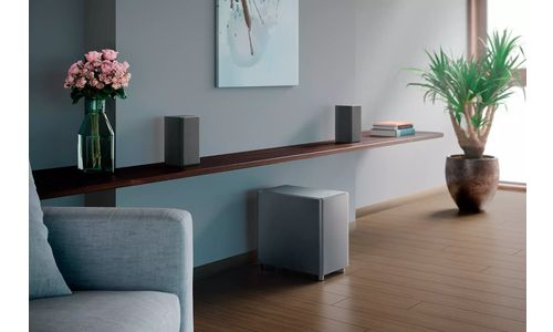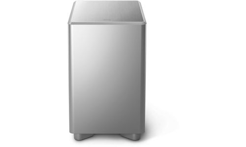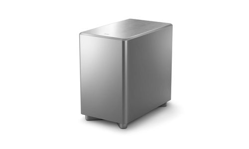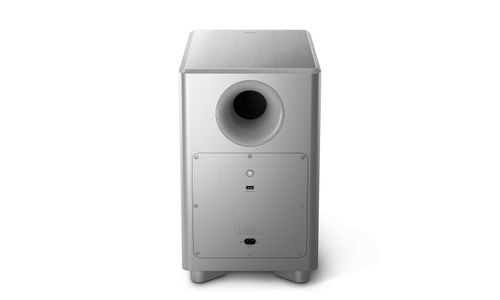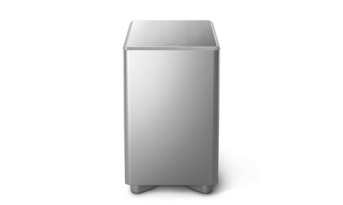 Dankzij het slanke ontwerp is deze subwoofer perfect voor de meeste leefruimten. Het slanke ontwerp met aluminium bovenkant ziet er in elke omgeving geweldig uit. En als u niet wilt dat de subwoofer zichtbaar is, kunt u deze eenvoudig verbergen.
