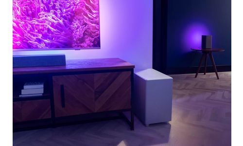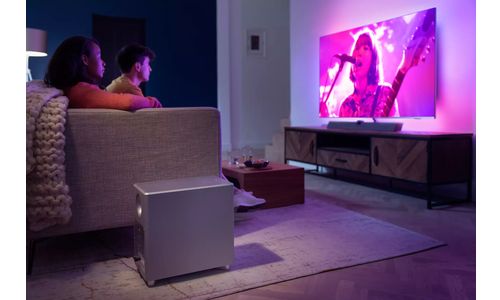 Vindt u het idee van een soundbar niets, maar wilt u het geluid van uw TV wel naar een hoger niveau tillen? Met deze subwoofer wordt het basgeluid van films, shows en muziek versterkt op uw Philips-TV met DTS Play-Fi*. Eenvoudig te verbergen en toch enorm krachtig.