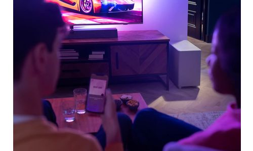 Installatie kan niet eenvoudiger. Sluit de subwoofer eenvoudig aan op uw Philips-TV via de Philips Sound-app of het DTS Play-Fi-menu op uw TV.