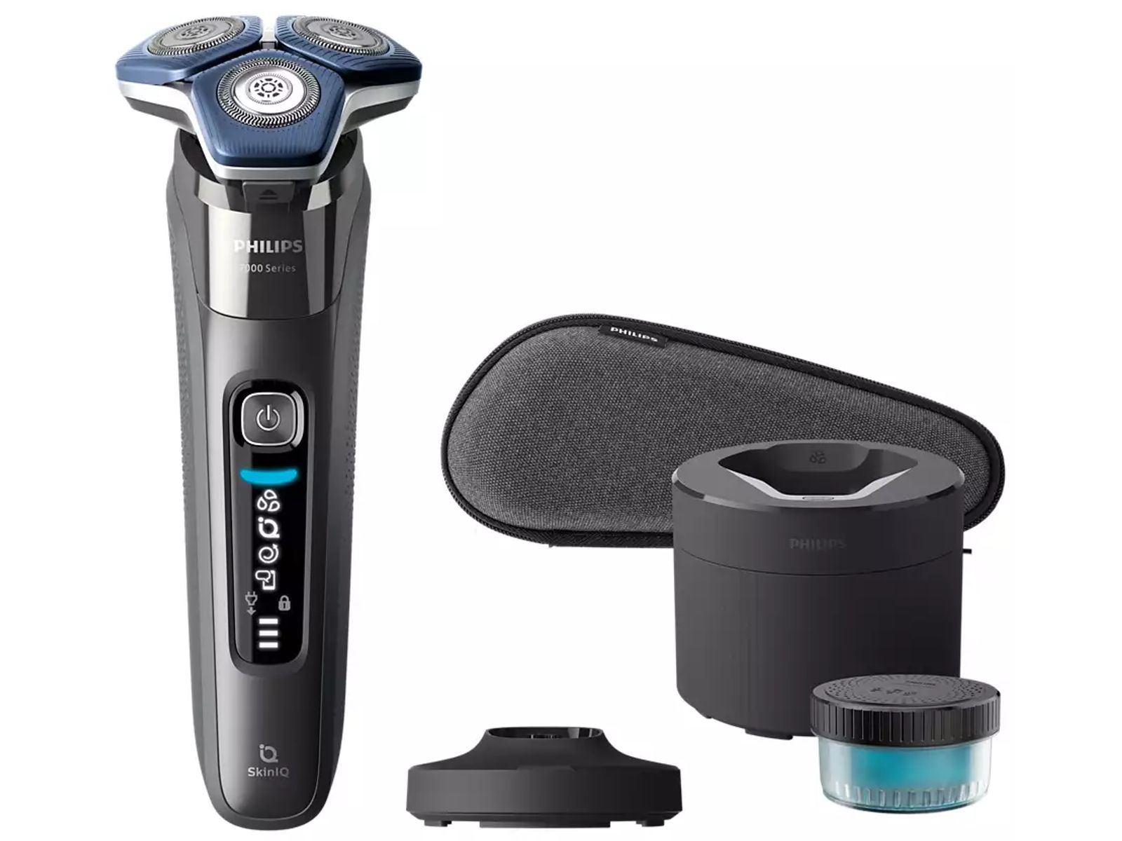 De Philips 7000-serie glijdt soepel over uw huid en scheert elk haartje kort af, zelfs op een baard van 3 dagen. Het scheerapparaat is uitgerust met geavanceerde SkinIQ-technologie en detecteert, past zich aan en corrigeert de beweging voor een betere huidbescherming.