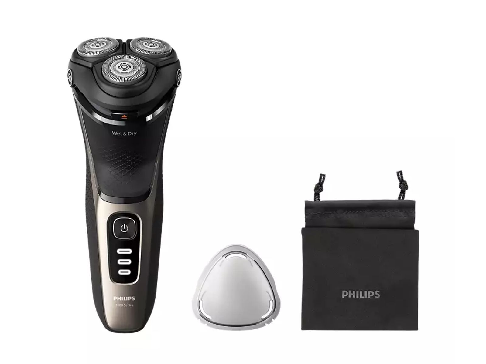Philips Shaver 3000 Series Wet & Dry elektrisch scheerapparaat zorgt voor een comfortabele, schone scheerbeurt, zelfs op een gevoelige huid. 5D Pivot & Flex Heads, 27 zelfslijpende PowerCut-mesjes en nat en droog gebruik zorgen elke keer weer voor uitstekende, betrouwbare resultaten.