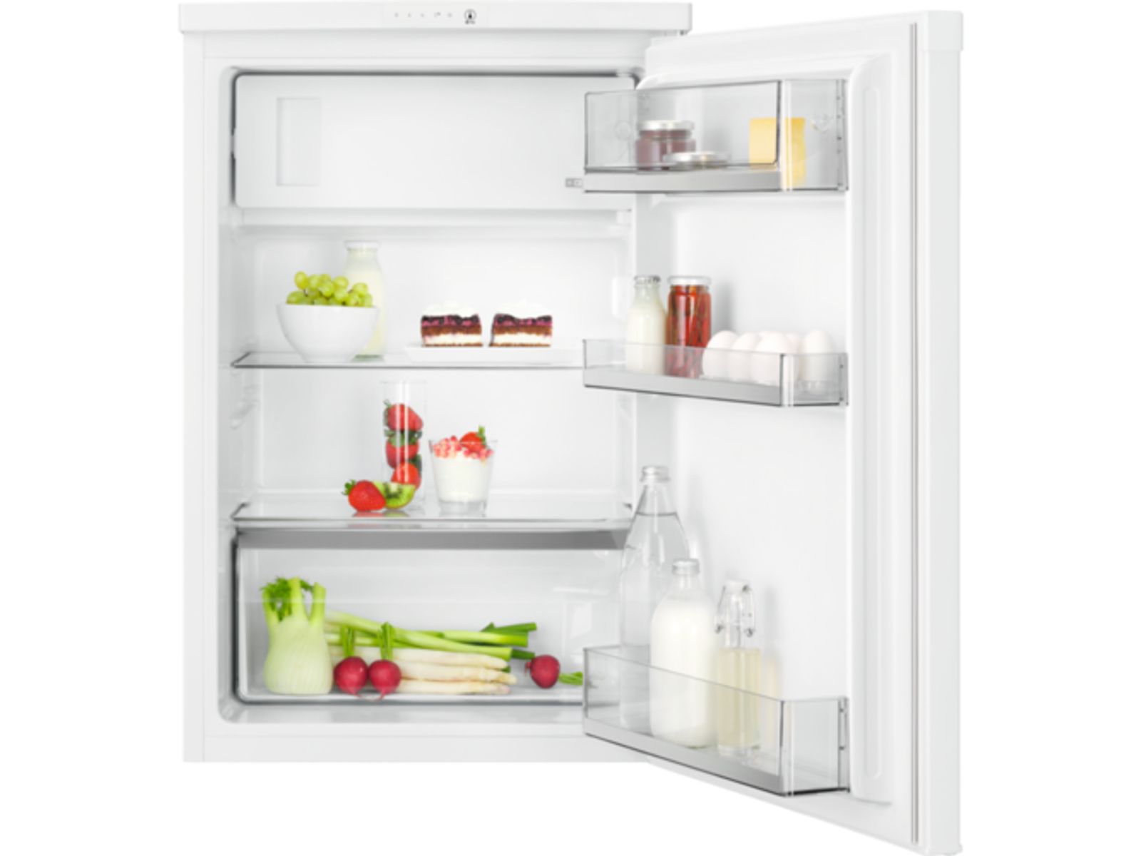 Voedsel veilig invriezen, ook in de koelkast. Met het viersterrenvriesvak kun je verse levensmiddelen invriezen tot -18ºC, zelfs in de koelkast. Ideaal voor het efficiënt invriezen van kleinere hoeveelheden voedsel of kant-en-klare maaltijden.