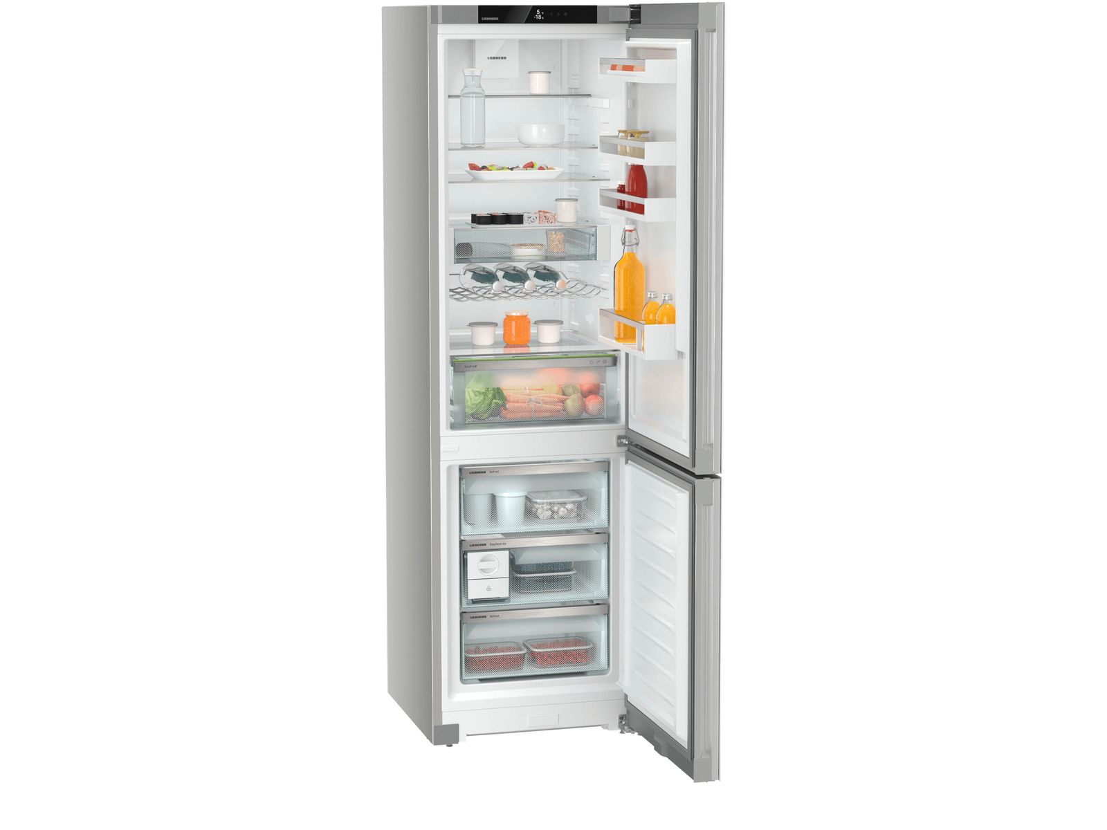 De voorzijde van deze koel/vriescombinatie bestaat uit wit glas. Het deelbare draagplateau en flessendraagrooster bieden extra flexibiliteit. In de EasyFresh lade bewaart u groenten en fruit dubbel zo lang en het FreshAir filter zorgt voor een fris interieur. Het NoFrost vriesdeel hoeft u nooit te ontdooien. Volledig vlakke deuren met geïntegreerde grepen zijn voor iedereen gemakkelijk te openen. Maak in een handomdraai 60 ijsblokjes met de EasyTwist-Ice. Met optionele SmartDeviceBox geschikt voor smarthome.