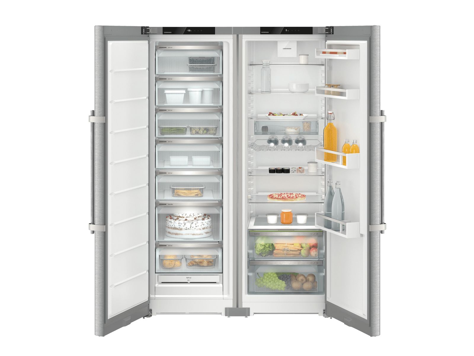 Dit side-by-side voorraadcentrum met volledig vlakke deuren en hevelgrepen biedt net dat beetje extra. Het deelbare draagplateau en flessendraagrooster bieden extra flexibiliteit. In de EasyFresh laden blijven groenten en fruit extra lang vers en de VarioSafe biedt de perfecte opbergplek voor kleine potjes en tubes. PowerCooling met FreshAir filter zorgt voor een gelijkmatig verdeelde temperatuur en een fris interieur. Het NoFrost vriesdeel hoeft nooit te worden ontdooid. Voorbereid voor smarthome.