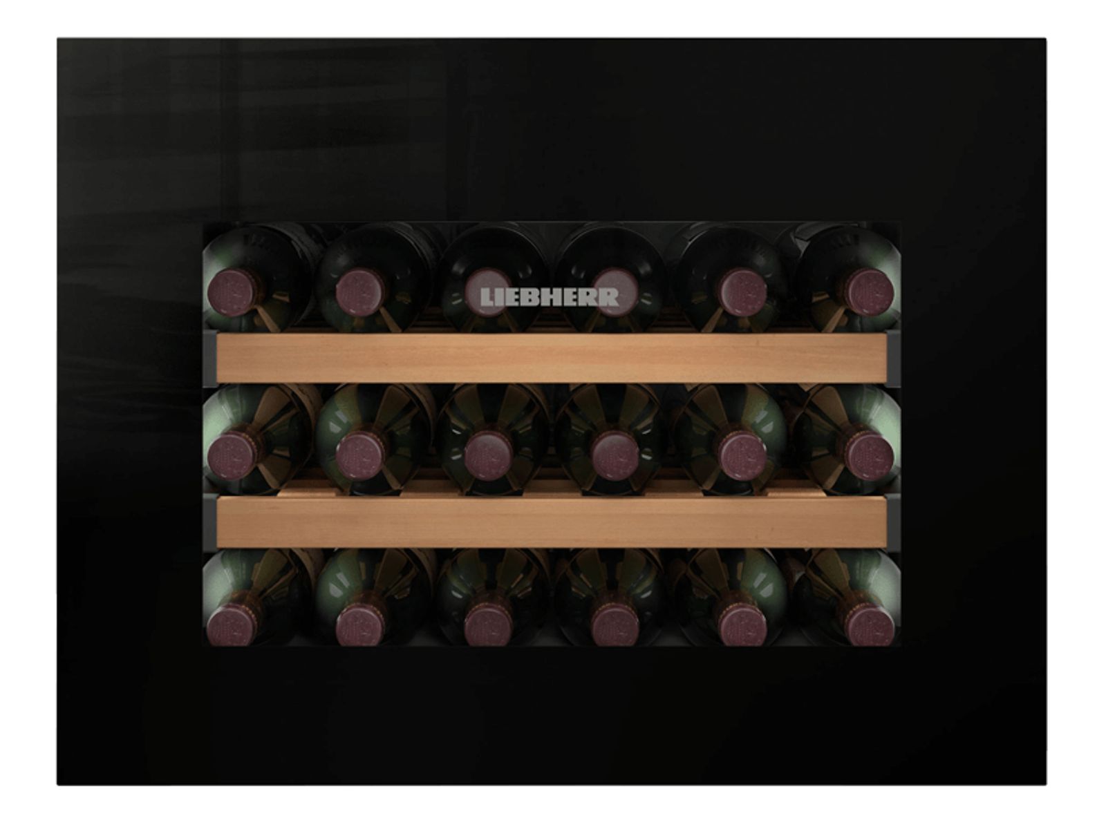 Compacte inbouw wijnkoelkast met zwarte greeploze glasdeur en verticale TipOpen techniek. Temperatuur digitaal instelbaar vanaf +5°C tot +20°C. De houten plateaus lopen op metalen telescooprails en de 2 LED lichtzuilen kunt u met stapjes dimmen en permanent laten branden. Capaciteit 18 flessen Bordeauxformaat, langere rosé of witte wijnflessen kunnen veilig in de breedte worden gelegd.