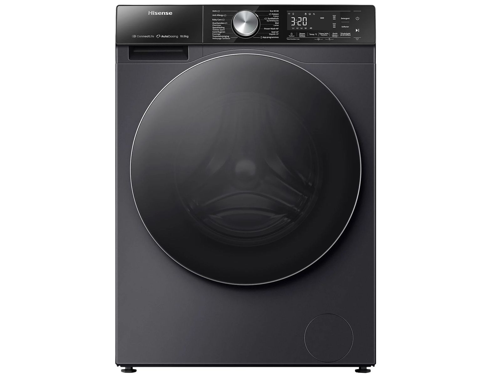 De Hisense WF5S1045BB met energielabel A is een wasmachine die bij uitstek geschikt is voor grotere huishoudens. Met zijn vulgewicht van maar liefst 10,5 kilo weet jij die opstapelende was moeiteloos bij te houden. Aan programma’s heeft de machine geen gebrek. Kies bijvoorbeeld voor het snelle Power Wash 49’ of Snel 15’, waarmee jouw was in een mum van tijd weer fris uit de trommel komt. Zeg kreukels en geurtjes in je kleding maar vaarwel, want de ingebouwde stoomfunctie maakt daar korte metten mee. Bovendien is de wasmachine zuinig in gebruik, zelfs als het aankomt op je wasmiddel: dankzij AutoDose wordt automatisch de juiste hoeveelheid gebruikt. Voor meer mogelijkheden, zoals slimme bediening, koppel je de WF5S1045BW via wifi met de ConnectLife-app op je telefoon.