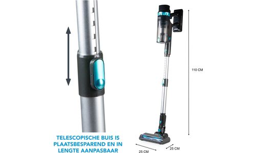Met de DOMO Steelstofzuiger DO244SV haal je een krachtige en veelzijdige schoonmaakpartner in huis. Deze steelstofzuiger transformeert moeiteloos van een volledige stofzuiger naar een handige handstofzuiger door simpelweg de telescopische steel te verwijderen. Perfect voor elk oppervlak, van vloeren tot plafonds, en zelfs in de lastigste hoeken. Zeg vaarwel tegen gedoe met snoeren en omarm het gemak van draadloos schoonmaken.