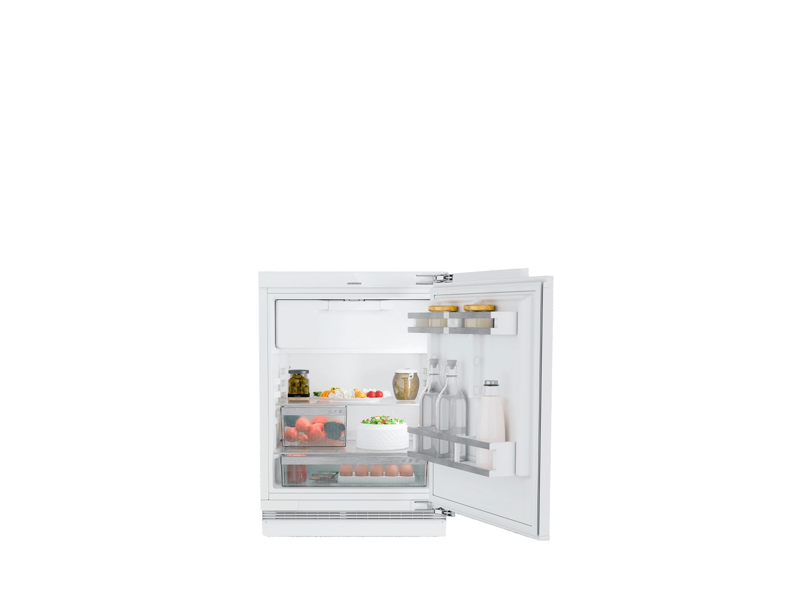 Deze extra ruime onderbouw koelkast met vriesvak in nismaat 86-92 voorziet in alle essentiële behoeften. Met de kastbreede universeelbox, de halve groentelade en gedeelde deurvakken vinden alle spullen een plekje. De temperatuur is via het display met Touch-bediening instelbaar. Dankzij de plintbeluchting kan deze koeler onder elk werkblad worden geplaatst.