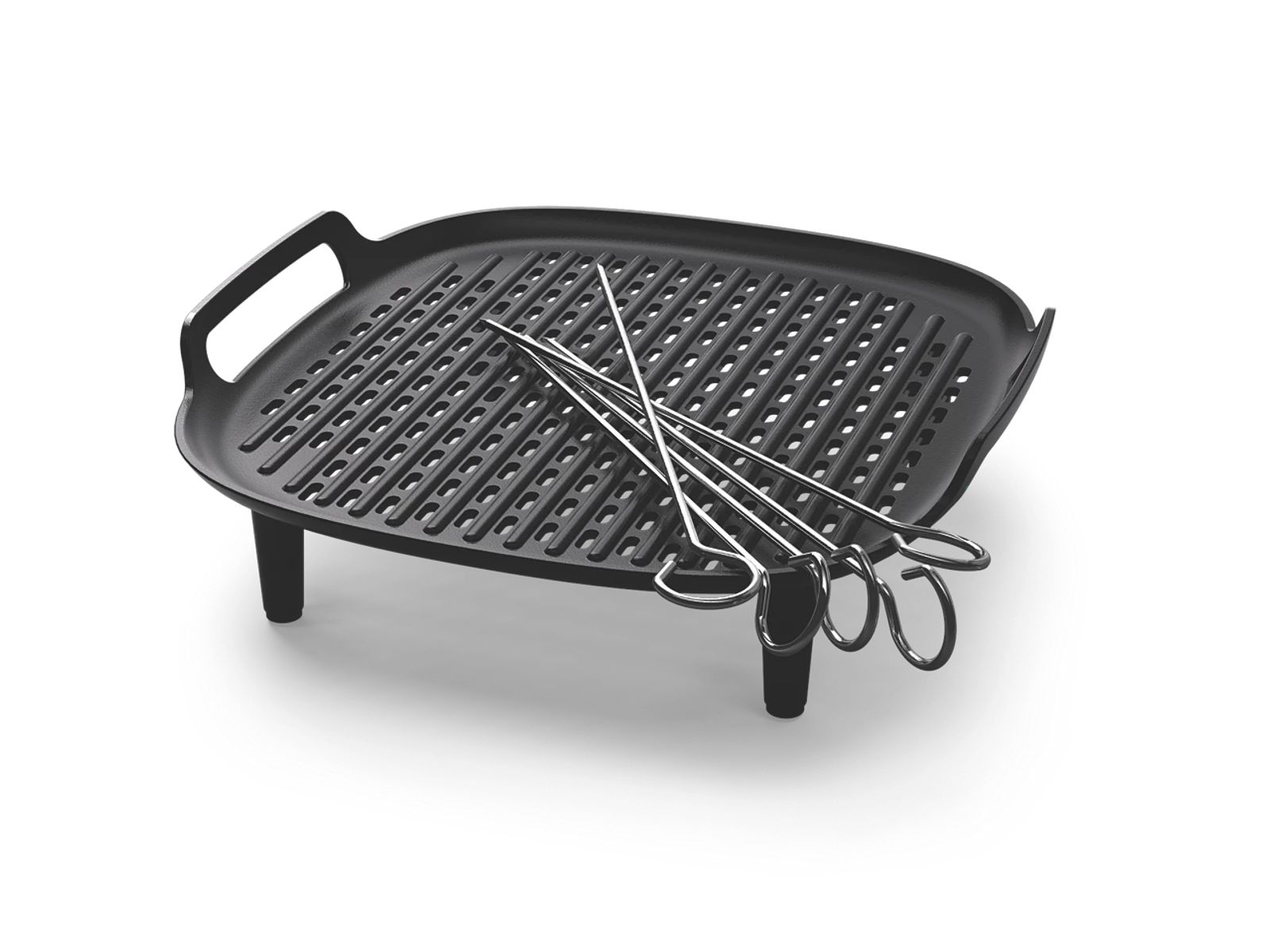 Vis, vlees en groenten worden perfect gegrild door de combinatie van de grillplaat en het unieke geperforeerde oppervlak met de typische randen. Dankzij de anti-aanbaklaag blijft voedsel niet plakken en is de plaat heel eenvoudig schoon te maken.