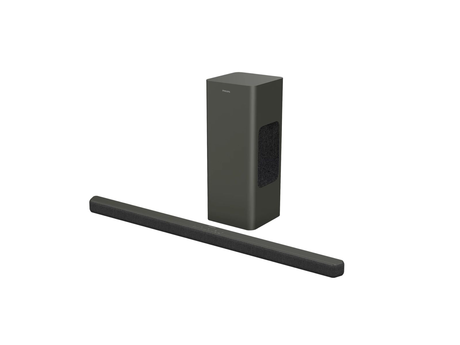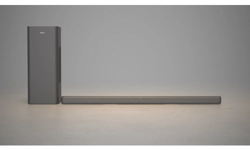 Deze soundbar heeft een profiel van slechts 37 mm: hij past zelfs onder Ambilight-TV's met lagere standaarden. Dankzij de afneembare muurbeugels (meegeleverd) hebt u meerdere mogelijkheden om uit te kiezen. De ultracompacte, krachtige subwoofer is eenvoudig te verbergen en u kunt hem verticaal of horizontaal plaatsen.