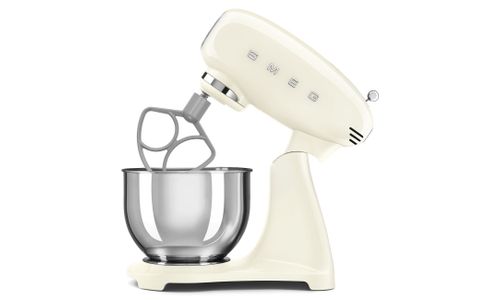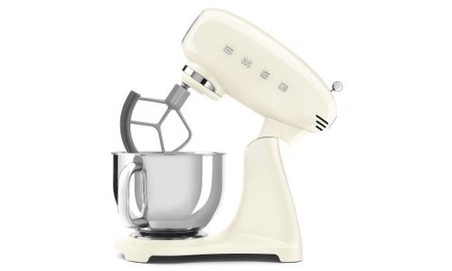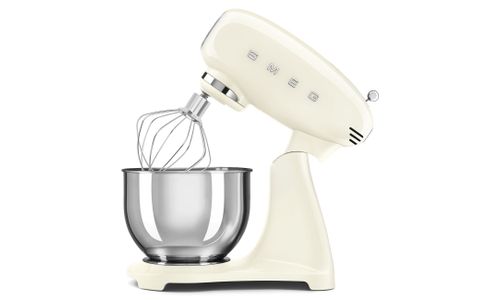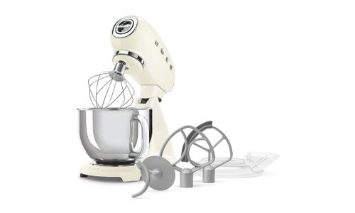 Prestaties en elegantie beschrijven op zijn best het ontwerp van de mixer/keukenrobot in jaren 50-stijl, een functioneel hulpmiddel dat verfijning en stijl in de keuken geeft