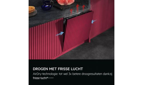 Activeer ZoneClean om de waterdruk in de sproeiarmen te verhogen voor het grondig reinigen van potten en pannen in het onderste rek, de druk in het bovenrek blijft laag voor delicate glazen. Twee zones, zonder extra water- of energieverbruik.