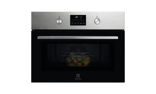 De 500 CombiAir-oven combineert heteluchtcirculatie en een draaiplateau met geavanceerde microgolftechnologie om je gerecht snel te ontdooien of te bereiden, waarbij alles gelijkmatig wordt verwarmd. Je kunt ook makkelijk grillen, braden of bakken met kortere kooktijden.